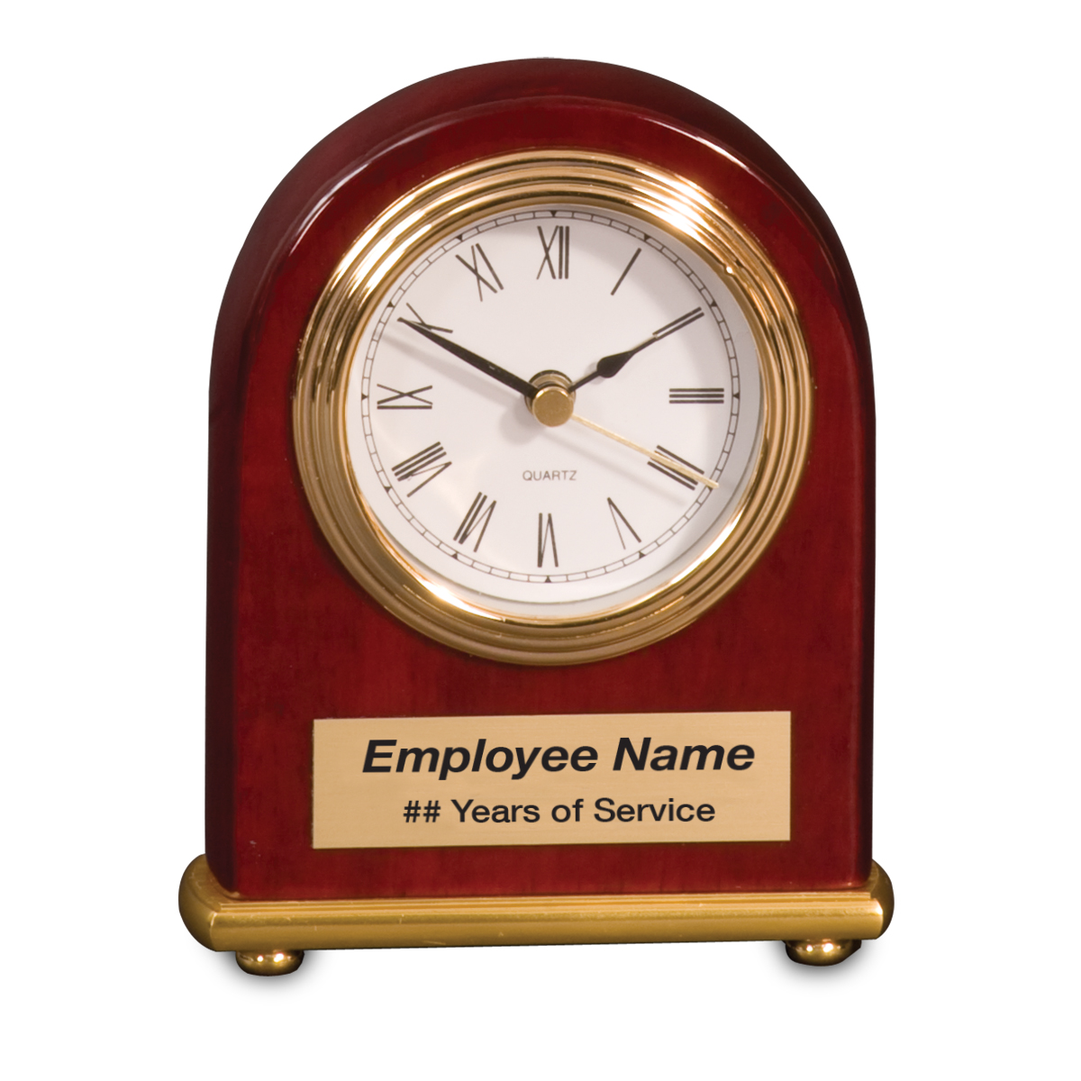 Rosewood Piano Finish Clocks are high quality, highly polished desk clocks. All Rosewood Piano Finish desk clocks include a Quartz clock with gold bezel. Clock features second hand timing and alarm. All Rosewood Piano Finish desk clocks are individually boxed. Clocks include AA batteries. Plates are not included.