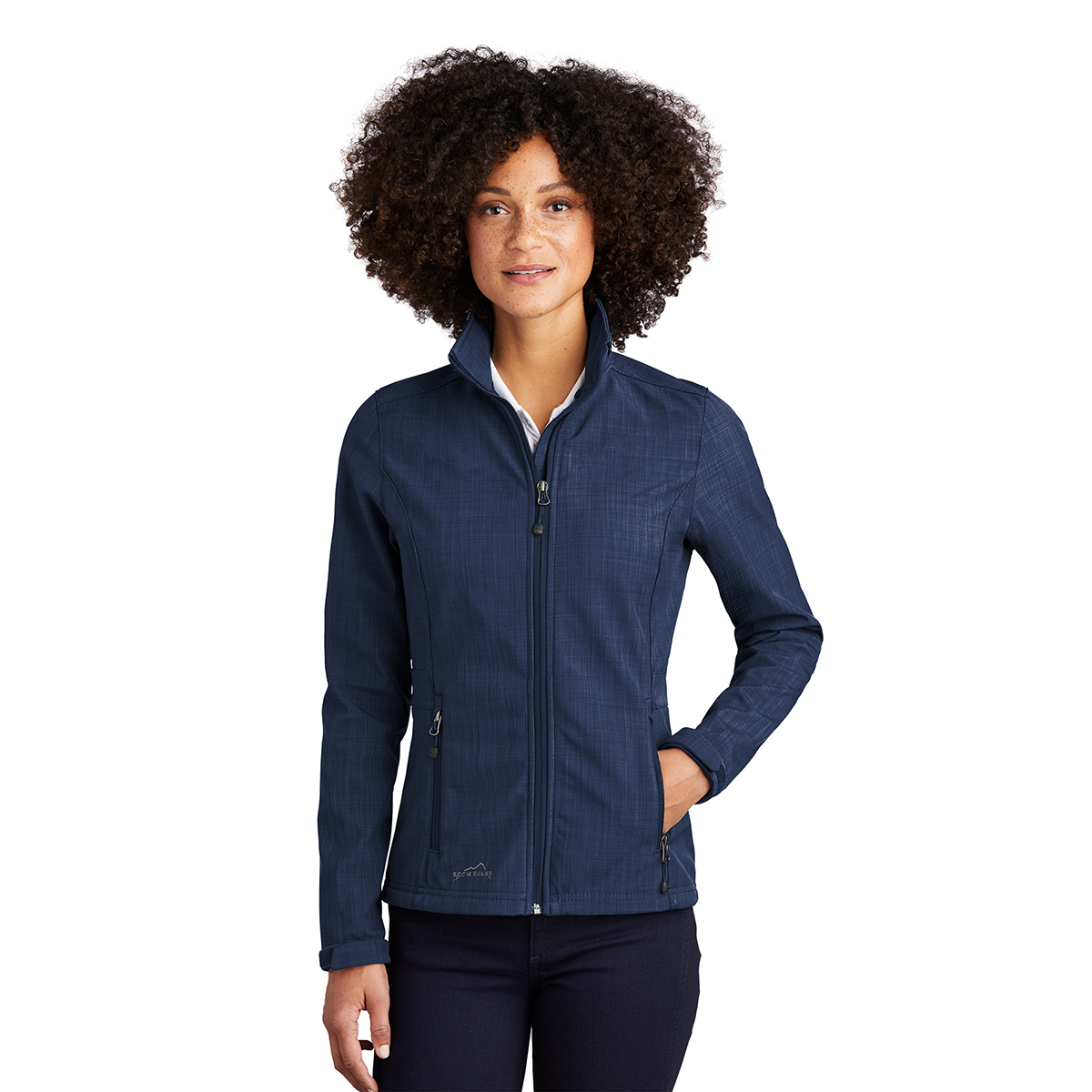 Gear up for the office or a weekend adventure in this soft shell that offers water protection and breathability thanks to its 3K/3K fabric. 3000MM fabric water protection rating. 3000G/M2 fabric breathability rating. Reverse coil zippers, front zippered pockets, adjustable tab cuffs with hook and loop closures and an open hem. Princess seams. Embroidered Eddie Bauer contrast logo on right hem. Made of a 100% polyester woven shell bonded to a water-resistant laminated film insert and a 100% polyester fleece.