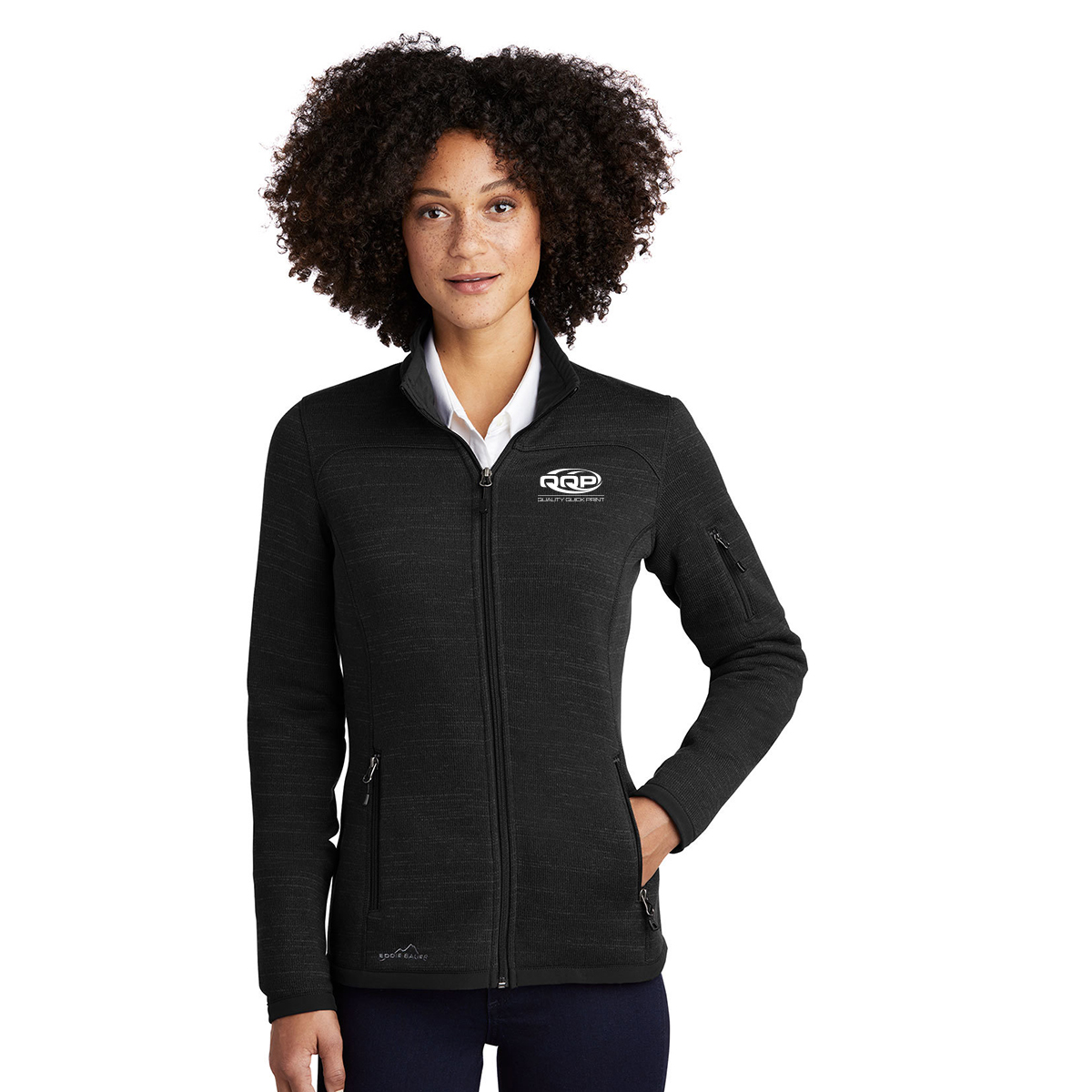 With an authentic outdoorsy lodge look, this refined sweater fleece delivers serious comfort. Smooth-faced and brushed-back for warmth, these anti-pill styles also have stretch for easy movement. Woven fabric details add sophistication. Cadet collar, exposed coil zippers, open cuffs and open hem. Front zippered pockets, zippered left sleeve pocket and embroidered Eddie Bauer contrast logo on the right hem. Made of 8.1-ounce, 100% polyester sweater fleece with 86/14 polyester/spandex woven trim. Produced using Low Impact Technology (L.I.T.™), which uses less dyestuffs, thermal energy and water for enhanced softness, performance and after-care quality.