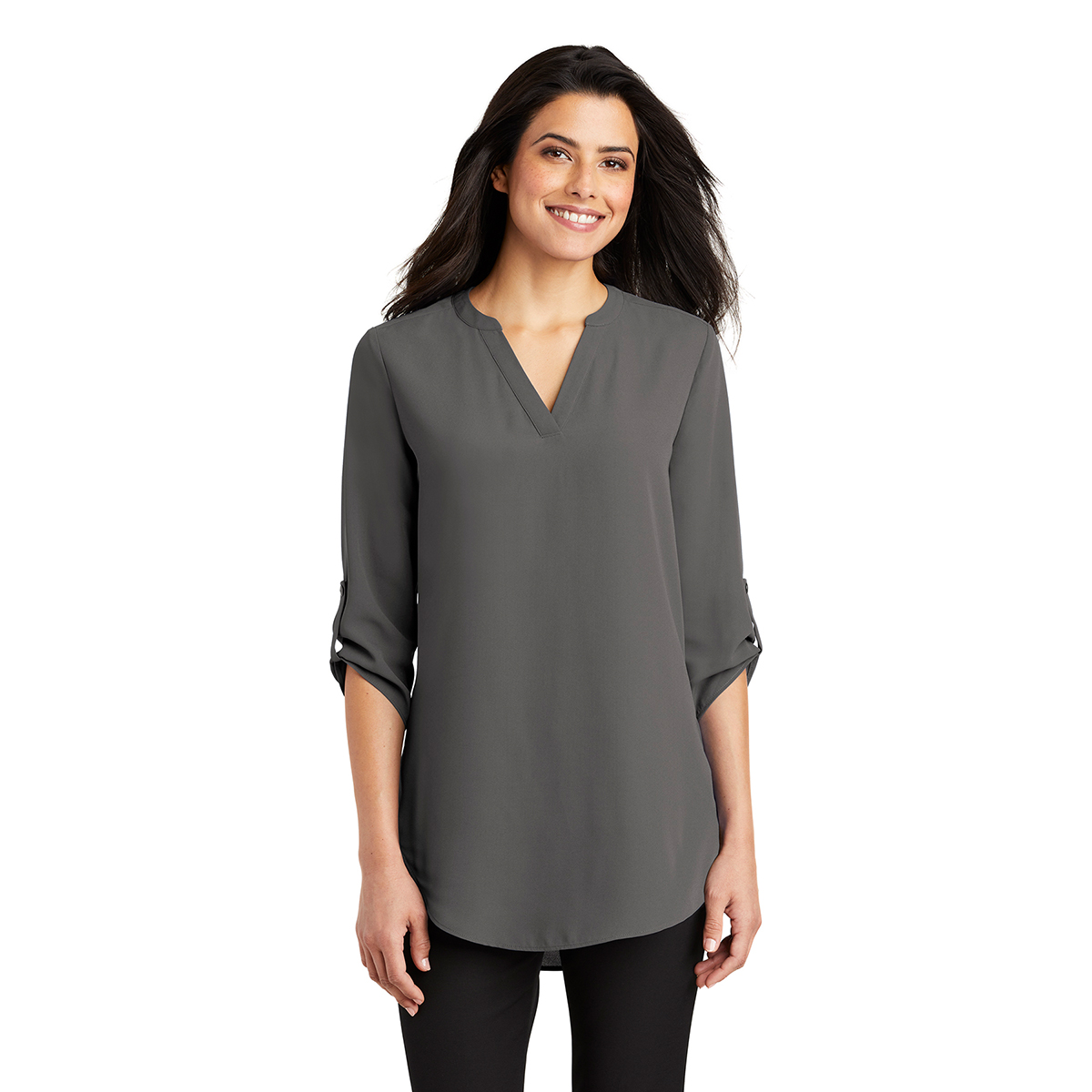 Transition seamlessly from professional life to play in this comfortable and flattering tunic blouse.